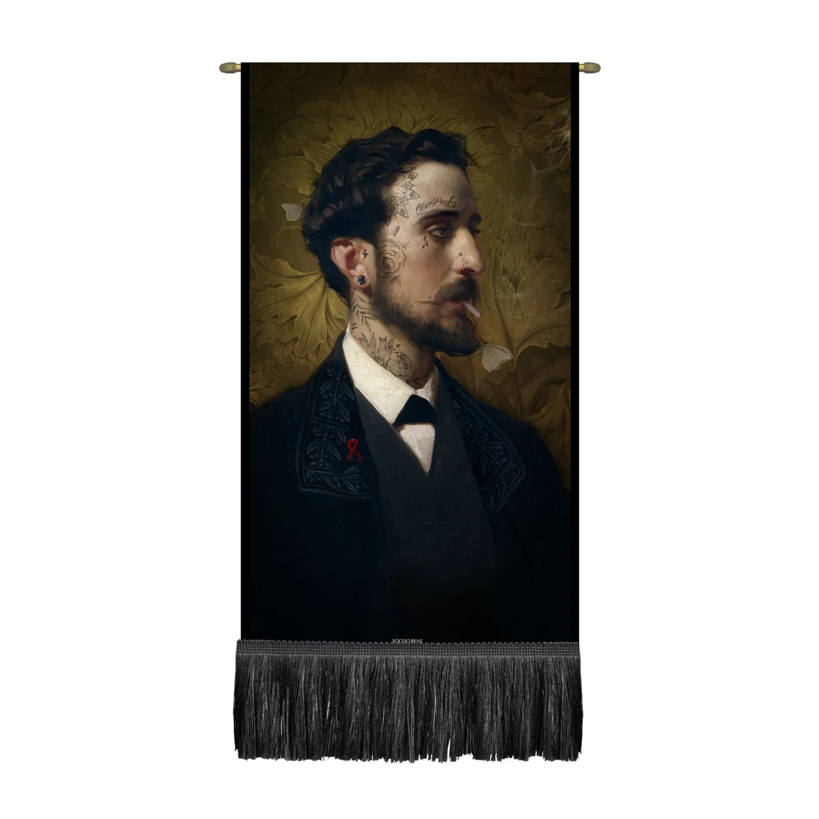 Mini tenture étendards format 37,5X72, imprimée sur velours de polyester.