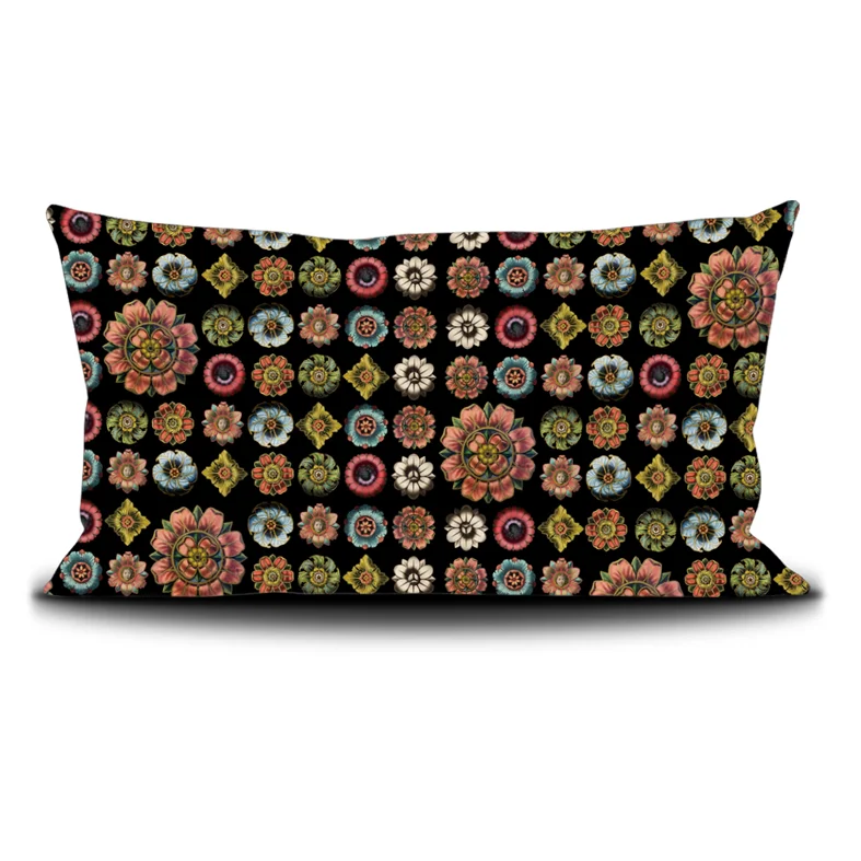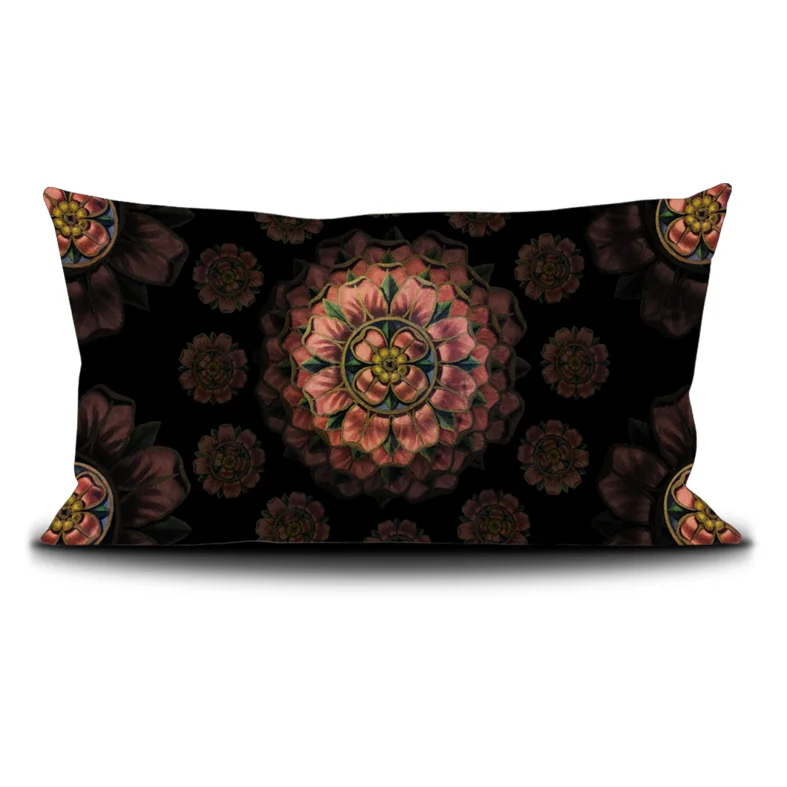 Housse coussin 70x140cm imprimée sur velours/Cushion cover 70x140cm printed on velvet Finition passepoil noir/Black piping finish